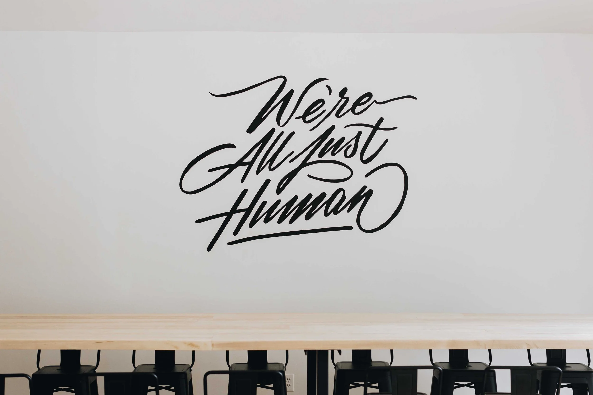 Later that Summer, Ponder opened a second location. We helped style the space, and also concepted a phrase to go on the wall as a custom mural. We lettered and painted the mural directly onto the wall. We also created menus and art to hang in the space. At each location, we managed the printing and installation of the vinyl and signage for the exterior of the cafes.