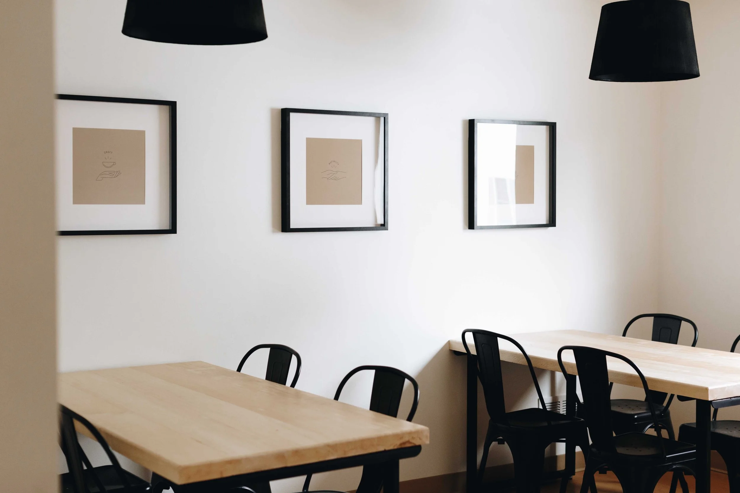 Next, we needed to bring the new brand into their current space with limited budget. We painted logos on the brick walls, styled shelves and bookshelves, and created custom custom branded art pieces for the space. We screen printed and printed posters in bulk to sell in the cafe and online. Small changes had a big effect to ensure the interior felt different from the brand before.