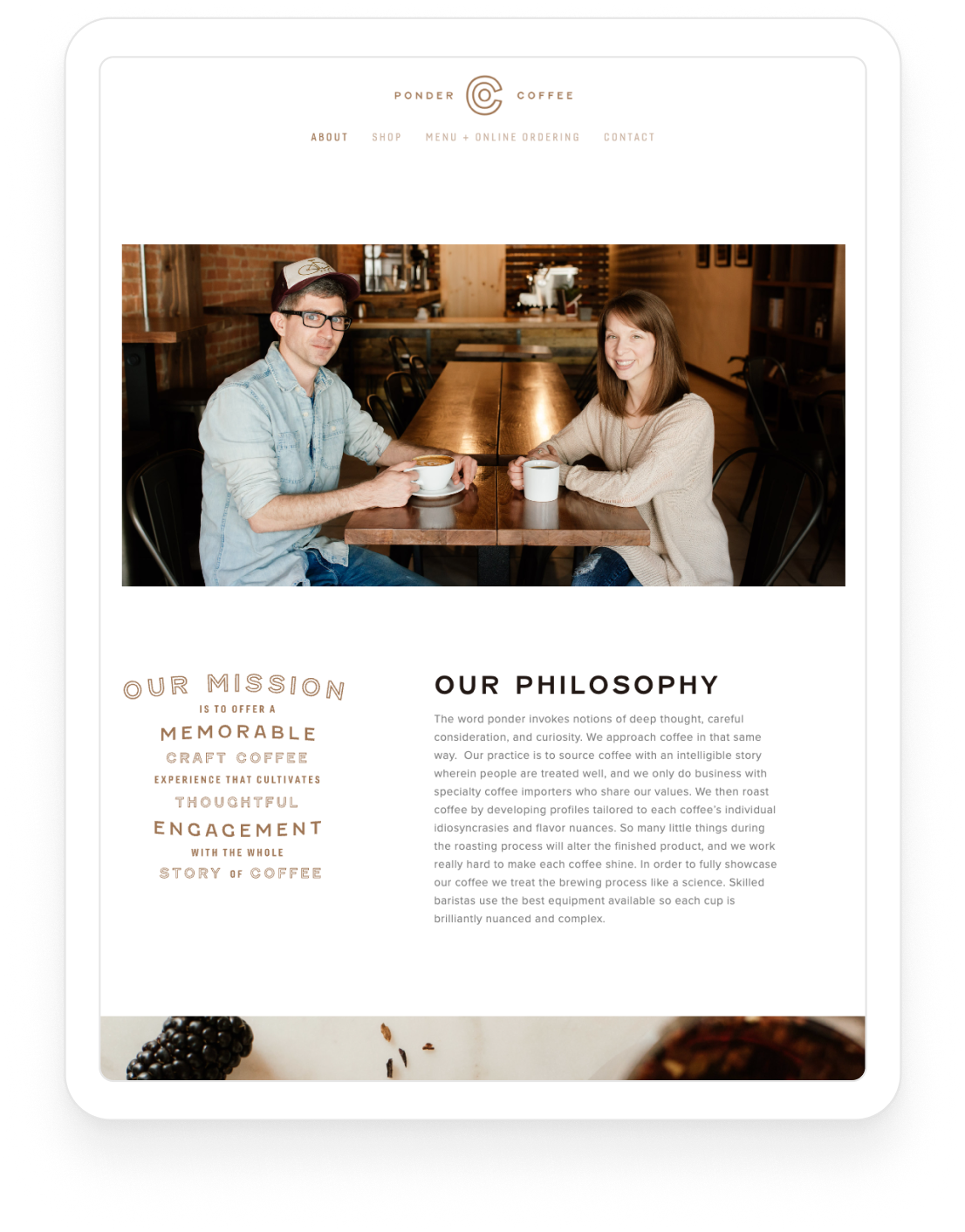Many names were brainstormed and many were cut down. Eventually, Ponder Coffee Co. came into being and perfectly embodied the mission: "to offer a memorable craft coffee experience that cultivates thoughtful engagement with the whole story of coffee."