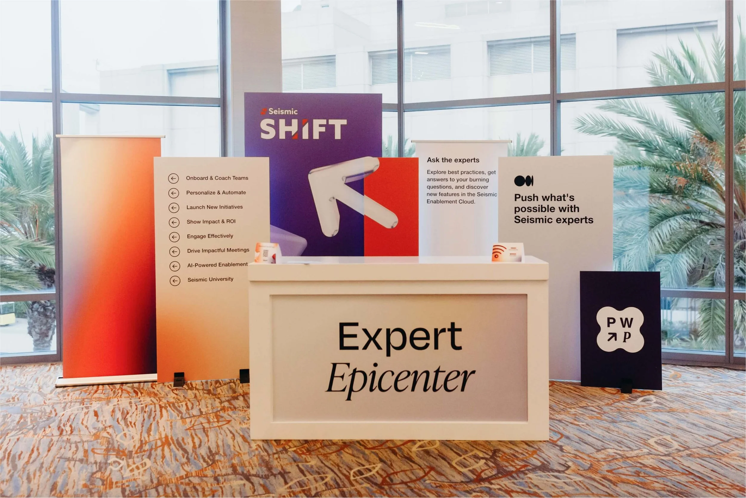 Shift is Seismic’s annual conference, with customers and prospects traveling from all around the world to connect, gain inspiration, and learn from leading experts on enablement. The brand and events team had two main goals, including an above benchmark NPS score (Benchmark is 30-50), and to create a cohesive brand experience that felt immersive, inspiring and enterprise that could increase attendee confidence, to support conversations at the event to close new deals and land renewals.