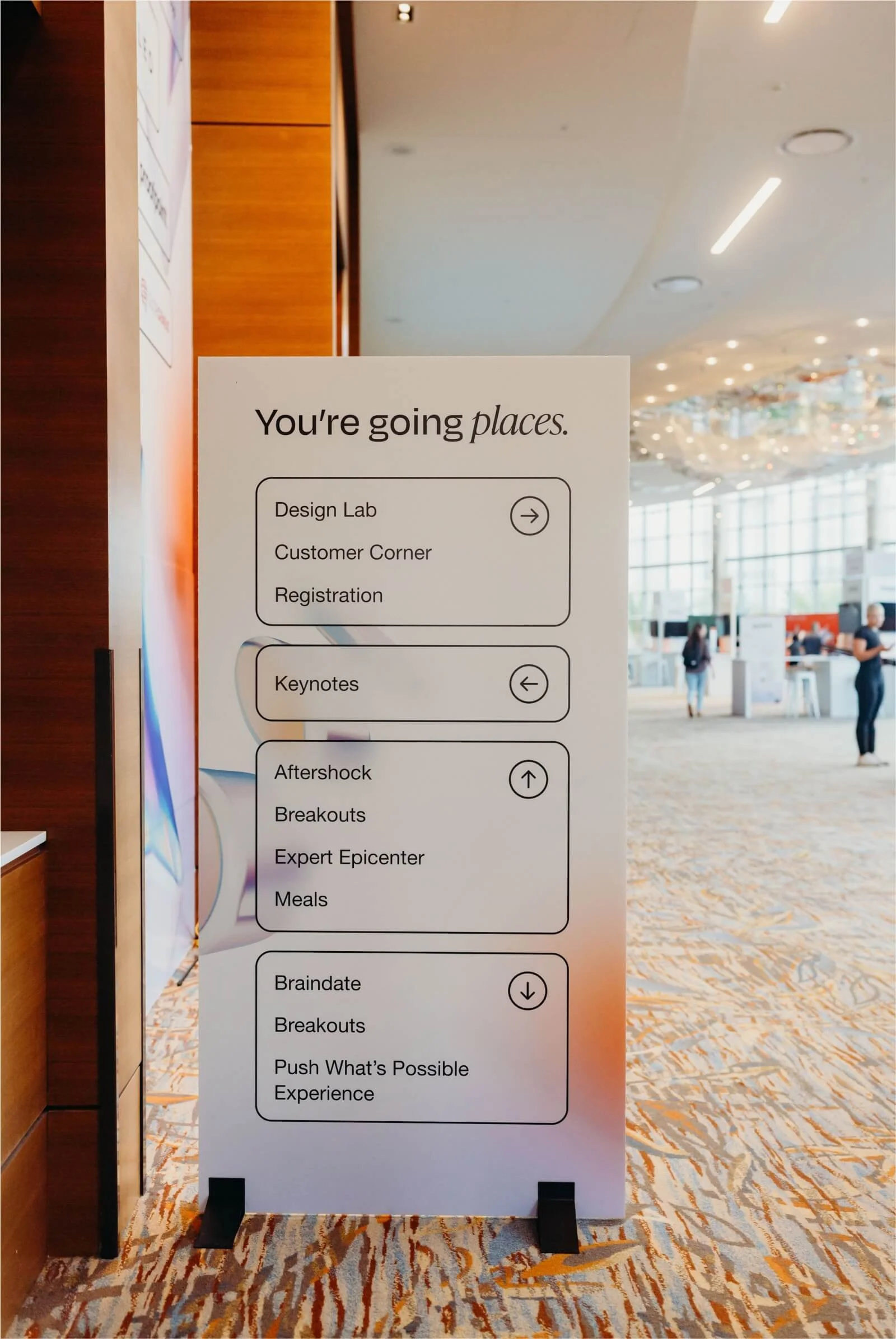 Our team needed to deliver roughly 200 printed signs for the event. Knowing this, I chose to have the team work within Figma, allowing for easier collaboration and system building. I established a master file for the team and stakeholders to work within, built out components and auto layouts, and created a creative system for different categories of signage, in order to maintain consistency across the space and to easily rinse and repeat the signs.